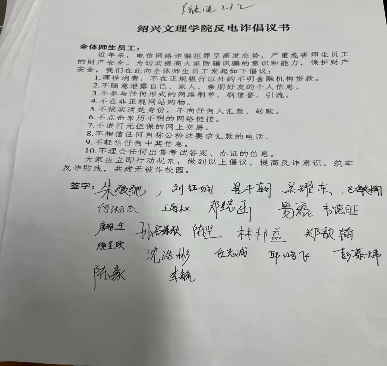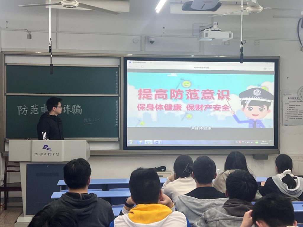 全体班级通过在课间播放教育视频、课间的案例警示教育、课间的个人教育分享将反诈防骗作为重要内容,有针对性开展以网络安全知识、金融信贷常识、个人信息保护、理性消费观念、反诈防骗基本常识等为主要内容的宣传教育,切实增强学生的防诈、识诈、反诈意识和能力。在辅导员或班主任指导下,各班学生签订反诈防骗承诺书。班级通过主题班会、防诈知识测试、推送警示案例、防范电信网络诈骗免费保险活动、开展“断卡行动”等活动加强教育力度。
